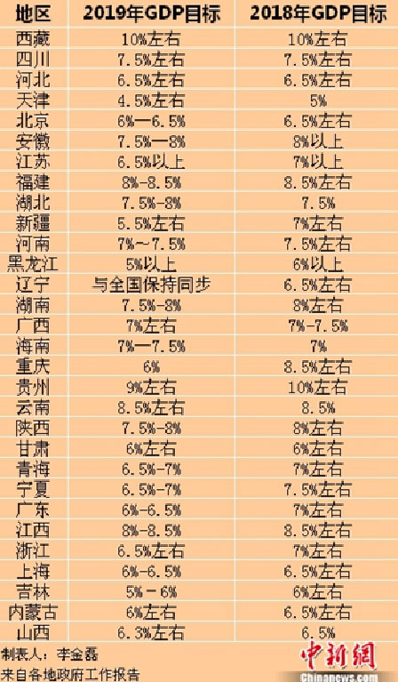 不过,也有省份设定的2019年GDP目标与去年持平。