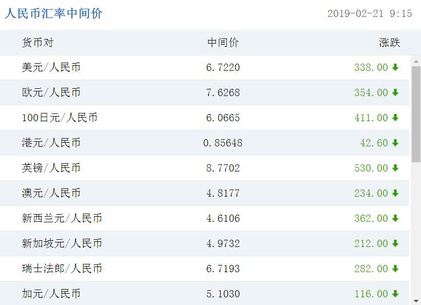 据中国外汇交易中心网站消息,21日,人民币兑美元中间价上调338个基点,报6.7220,创2月1日以来新高。