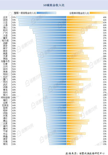 租房压力排行榜:北上深每月收入几乎都用来付房租