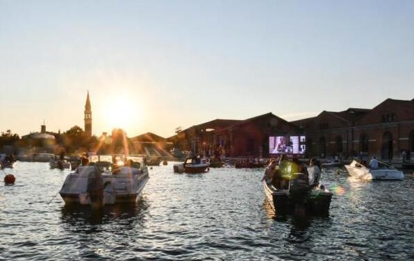 当地时间7月28日,意大利威尼斯“阿森纳码头”的水上影院举行首映。