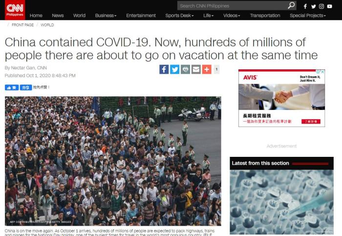 “人潮涌动的候机大厅、火车站及汽车站等,表明了这个国家正在从疫情中复苏。”这是法新社眼中的中国“十一”黄金周。报道写道,“在疫情暴发之后,今年黄金周的意义尤为特别。”“这与世界上大部分地区不断实施的封锁措施,形成鲜明对比。”