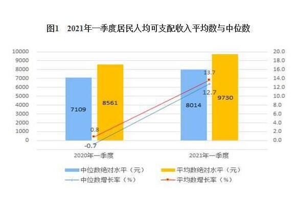 一季度,全国居民人均可支配收入中位数8014元,增长12.7%,中位数是平均数的82.4%。其中,城镇居民人均可支配收入中位数11090元,增长10.5%,中位数是平均数的84.5%;农村居民人均可支配收入中位数4340元,增长19.7%,中位数是平均数的80.4%。