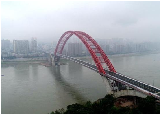 四川桥梁设计师们通过数十次的试验,实现世界首次在钢管混凝土拱桥的主拱主管内灌注C70自密实微膨胀泵送混凝土,有效提高承载能力、节约工程造价,比同类同规模的悬索桥和斜拉桥节约了至少9000万元人民币以上。“钢管混凝土结构具备承载能力高、结构轻盈、节约造价、结构整体刚度大,易于维护等特点。”参与大桥设计的四川省公路设计院高级工程师汪洋称,根据地形地质、行洪等情况,经与推力拱桥、斜拉桥、悬索桥等方案比较后,最终选定了最具经济优势的中承式钢管混凝土系杆拱桥一跨跨越长江主航道。
