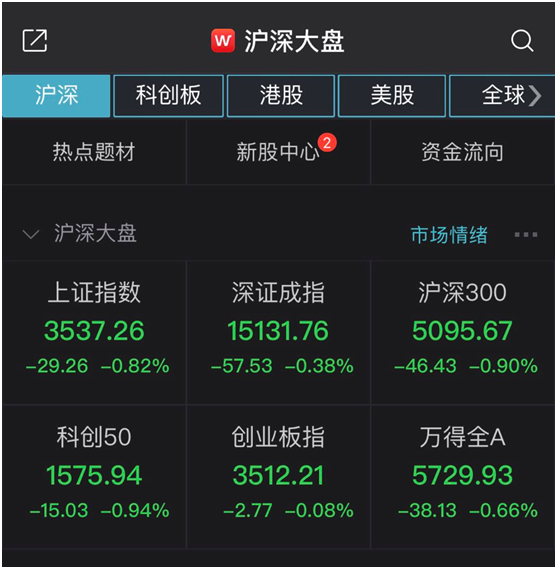 截至午间收盘,沪指报3537.26点,跌幅0.82%,成交额3177.37亿元;深成指报15131.76点,跌幅0.38%,成交额4424.95亿元;创业板指报3512.21点,跌幅0.08%。