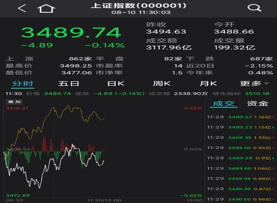 10日早间,A股三大指数维持横盘整理。截至午间收盘,沪指跌0.14%,报3489.74点;深成指跌0.34%,报14890.07点;创业板指跌0.67%,报3433.66点。