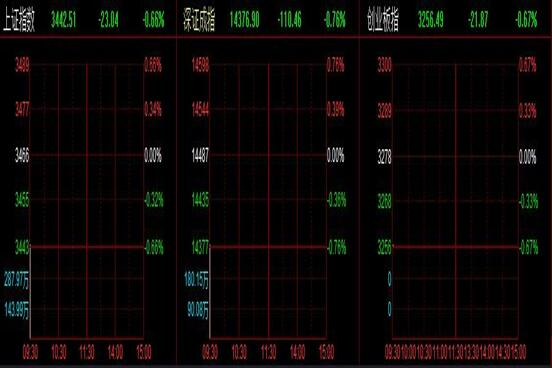 上证指数跌0.66%,报3442.51点,深证成指跌0.76%,报14376.90点,创业板指跌0.67%,报3256.49点,环氧丙烷、公交、足球概念等板块领涨两市,白酒概念、饮料制造、有机硅等板块跌幅居前。消息称白酒市场秩序或迎来强监管,白酒股大幅低开。