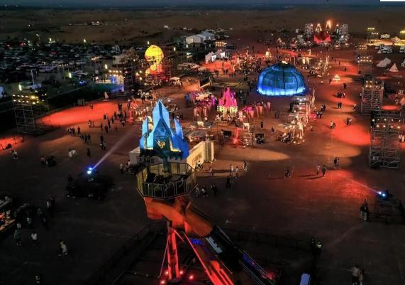 贺兰石篆刻与重金属摇滚、枸杞精酿与沙葱鸡尾酒、皮影戏与羊皮筏子、汉服穿搭与钢铁艺术装置、星空帐篷与野营房车……在刚刚过去的中秋假期,这些混搭元素与新奇玩法同时出现在了宁夏中卫的大漠赫兹音乐节,在占地超47000平方米的现场,可以窥见宁夏旅游复苏进行时的一个侧面。