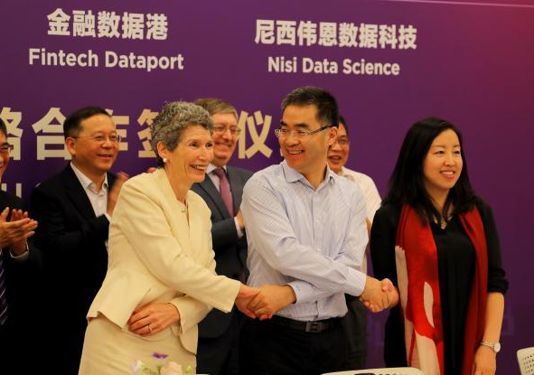 上海纽约大学、金融数据港和尼西伟恩数据科技有限公司28日举行战略合作签约仪式。