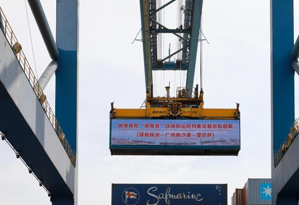 首批“湘粤非”海铁联运班列集装箱从广州装船启航运往非洲