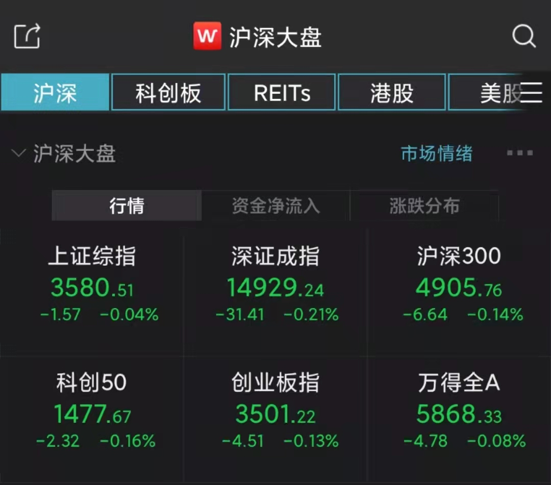 23日早间,A股微幅低开,沪指跌0.04%,报3580.51点;深成指跌0.21%,报14929.24点;创业板指跌0.13%,报3501.22点。
