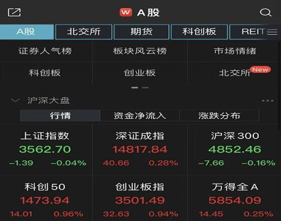 截至29日午盘收盘,三大指数收盘涨跌不一。上证指数跌0.04%,报3562.70点。深证成指涨0.28%,报14817.84点。创业板指涨0.94%,报3501.49点。