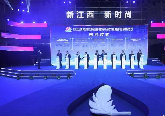 16日,2021江西纺织服装周暨第二届共青城市羽绒服装周在共青城市开幕。此间举行的纺织服装产业链项目集中签约,共签约项目43个,项目总金额达230余亿元。