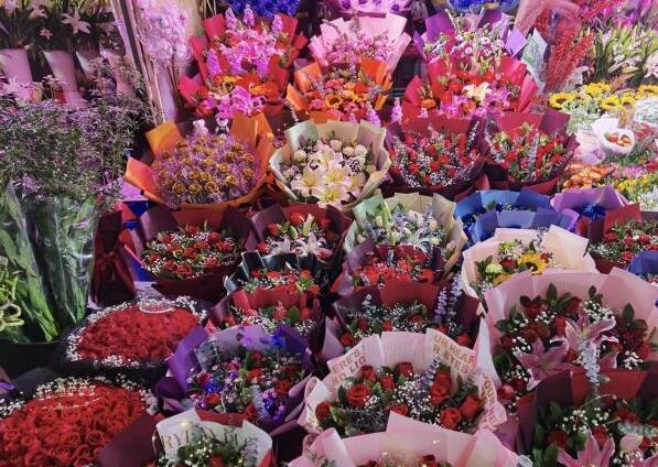 “涨,全都涨了。玫瑰涨也就罢了,郁金香也涨,康乃馨也涨,连草都涨了!”北京一家鲜花批发市场,批发商老杨对中新财经表示,店里的大绿植大多还是正常价位,可但凡是带花的价格都高到离谱。