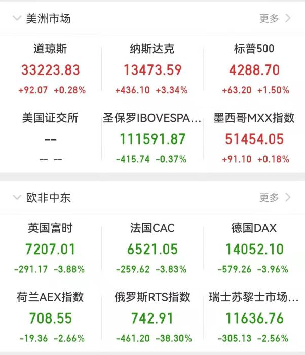 最终,道琼斯指数收涨0.28%,标普500指数收涨1.50%,纳斯达克指数收涨3.34%。