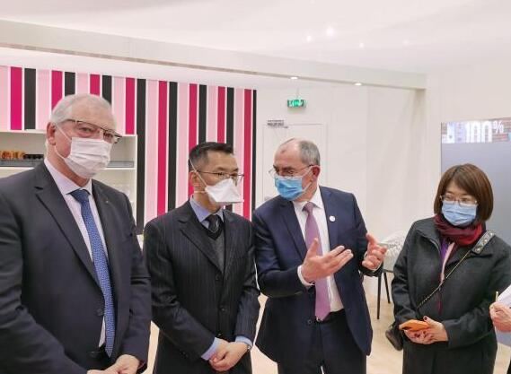 在法国农业和食品部农渔业局负责人陪同下,卢沙野夫妇参观了奶制品业、猪业、葡萄酒业、谷物业等展区,与相关行业协会负责人进行交流,听取各行业经营及与中国合作情况。法方代表们纷纷表示,中国是法国农食产品的重要出口市场,期待在疫情后扩大与中方合作,推动更多法国农食产品进入中国市场。
