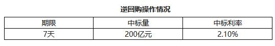 据中国人民银行官网消息,为维护银行体系流动性合理充裕,2022年4月12日人民银行以利率招标方式开展了200亿元逆回购操作,期限为7天,中标利率2.10%。