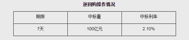 据中国人民银行官网消息,为维护银行体系流动性合理充裕,2022年4月13日人民银行以利率招标方式开展了100亿元逆回购操作,期限为7天,中标利率2.10%。