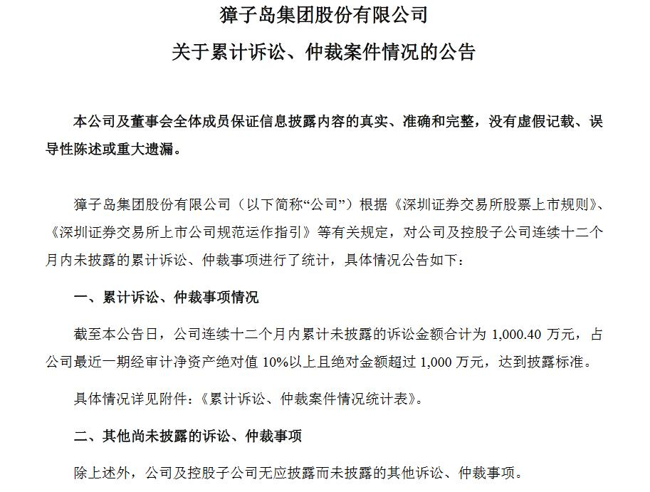 据深圳证券交易所网站消息,獐子岛集团股份有限公司(ST獐子岛)2日发布公告,截至公告日,公司连续十二个月内累计未披露的诉讼金额合计1000.40万元,占最近一期经审计净资产绝对值10%以上。
