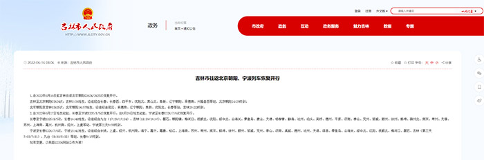 据吉林市人民政府网站消息,自2022年6月16日起吉林往返北京朝阳G3624/3625次恢复开行。