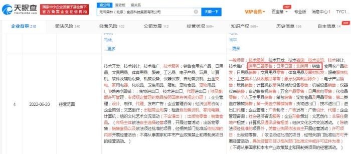 天眼查消息,近日,元气森林(北京)食品科技集团有限公司经营范围新增医用口罩零售等。