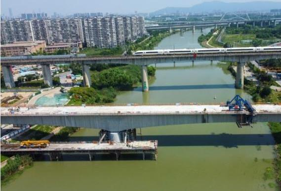 南沿江城际铁路跨秦淮河特大桥连续梁顺利合龙