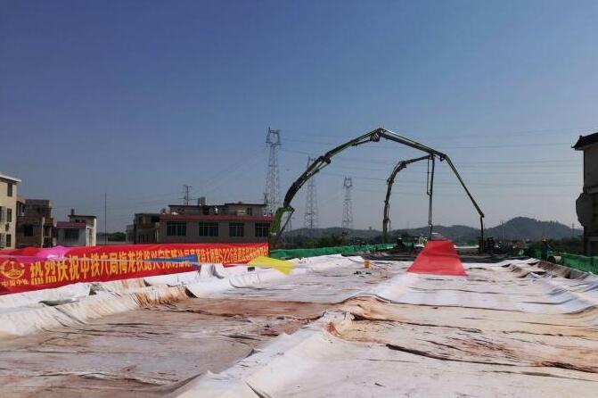中铁六局广州公司介绍,此次合龙的连续刚构,全长112米,梁高1.45米。梁身重达5200吨,主体采用实心梁形式,为标段内首条连续刚构,此连续刚构本次共计浇筑30余小时,涉及混凝土1834m?。