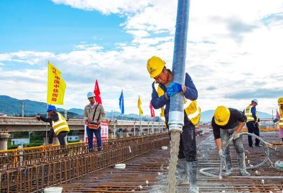 “施工过程中,为确保进度和质量,参建各方进行多次施工方案比选研讨,严格施工方案审查,加强与地方政府的沟通协调,完善下穿公路的交通疏导,强化临近高铁的安全防护。”中铁四局渝昆高铁昆明枢纽总工程师邓志标说,此次连续梁浇筑用时一天一夜,各方紧密配合,确保了连续梁浇筑顺利完成,既保证了施工进度的有序推进,又保障了公路和高铁的正常运行。