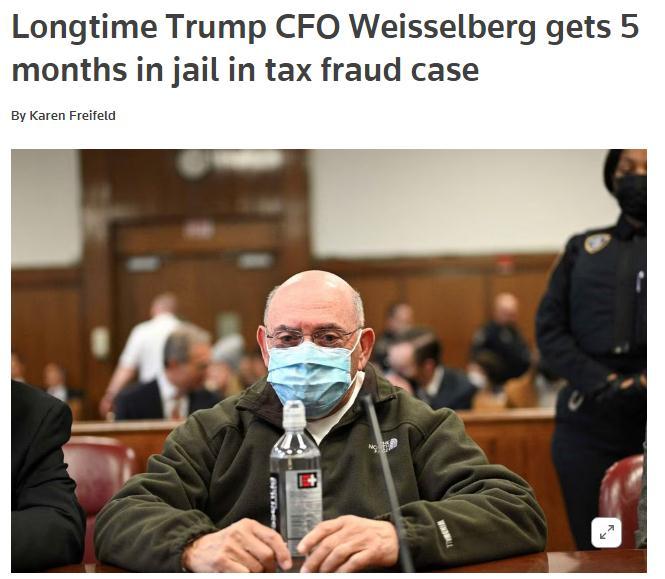 综合外媒报道,特朗普集团前首席财务官(CFO)魏塞尔贝格10日被判刑五个月,罪名是参与特朗普集团的税务欺诈计划。