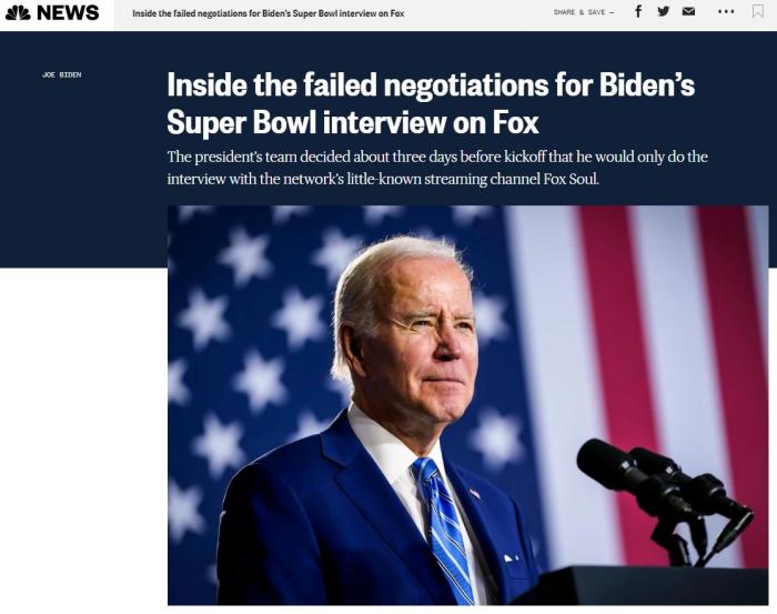 但到了当天晚上,即接受专访的最后期限时,一名白宫官员对美国政治新闻网站Politico表示,“福克斯的声明暗示专访改了时间,这是不准确的。”拜登不会接受任何“超级碗”的访问。