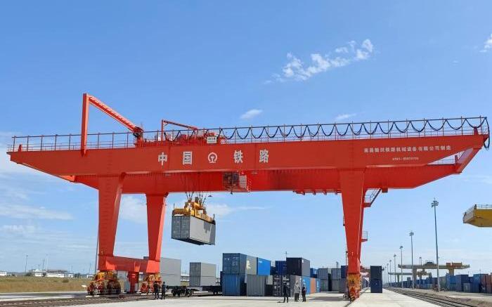 “这里地处东北亚经济圈中心,是‘一带一路’陆路通道上重要节点。10年来,我们的换装能力不断增强”。据杨亮介绍,满洲里铁路口岸集装箱场总占地面积50万平方米,截至目前,设有宽轨线路4条,准轨线路3条,配置起重能力为40吨的集装箱专用龙门吊6台,起重能力为45吨的集装箱正面吊5台,日最大换装能力为840标箱。今年1月至8月,该集装箱场总装卸作业量达到37万标箱,同比增长40%。